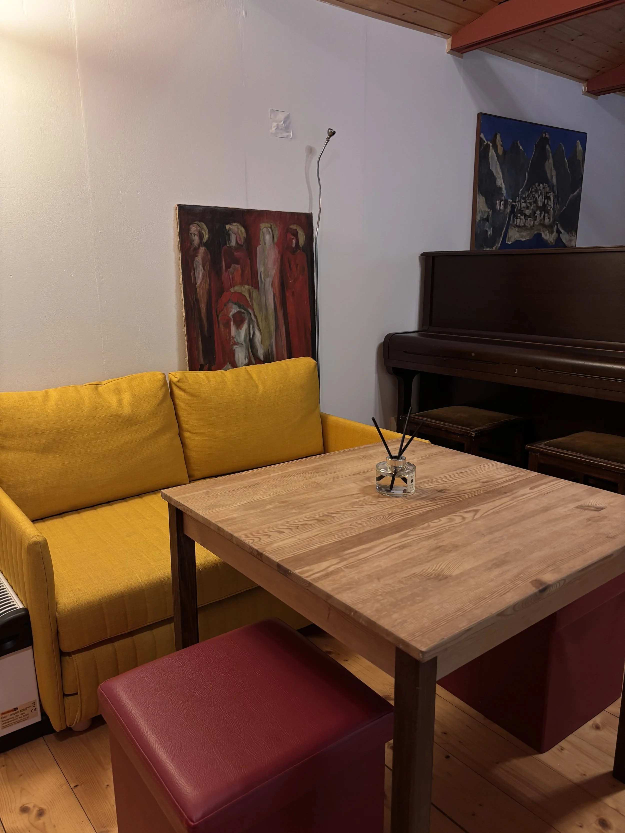 The space can be booked for a few days or several weeks, depending on availability and project needs. The cottages can be booked independently or as part of a residency or project. Musicians will find instruments and practice spaces available; visual artists and interdisciplinary creators are welcome to adapt the space to their needs.